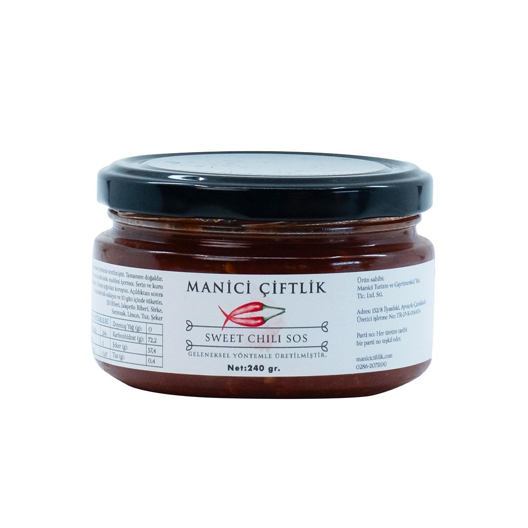 Manici Çiftlik’in doğal ve katkısız malzemelerle hazırladığı Sweet Chili Sos, tatlı ve acının mükemmel dengesiyle yemeklerinize bambaşka bir lezzet katıyor. Tarlalarımızda yetişen taze biberler, doğal şeker ve baharatlarla harmanlanarak geleneksel yöntemlerle hazırlanır. Hiçbir koruyucu ya da yapay katkı maddesi içermeyen bu sos, doğanın saf lezzetini sofralarınıza taşır.